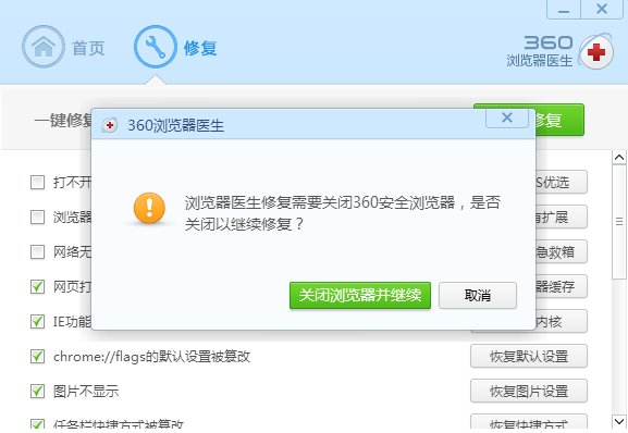 2、進入以后我們直接點擊一鍵修復來完成瀏覽器各個問題的修復工作