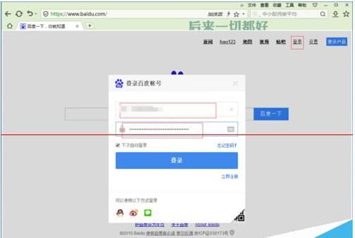 1、比如登錄百度,會提示保存登錄信息,如下圖所示: