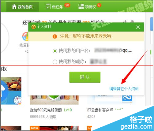 4、當我們點擊了會員中心的賬號后,就可以看到它彈出一個個人資料的面板。我們在它的右下角點擊編輯其它個人資料。