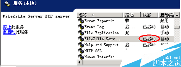 3、回到系統服務列表,重新啟動服務,發現FileZilla Server FTP server服務可以正常啟動了;