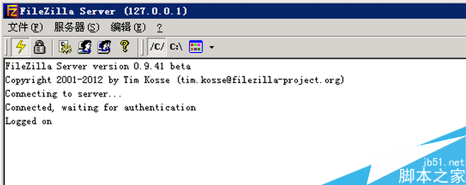 4、重新運行FileZilla Server,發現可以正常連接服務器并可以用FTP客戶端遠程連接。