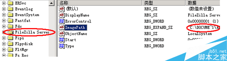 1、運行中輸入regedit,打開注冊表,在[HKEY_LOCAL_MACHINESYSTEMCurrentControlSetServicesFileZilla Server找到這個路徑,也就是FileZilla的路徑,有一鍵名是"ImagePath",也可以利用注冊表自帶的搜索功能,查找你想要修改的路徑;并點開這個鍵名查看信息,發現就是原來的路徑。