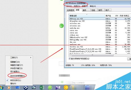 按 CTRL +ALT +DEL 或者 右鍵點擊任務欄選擇啟動任務管理器