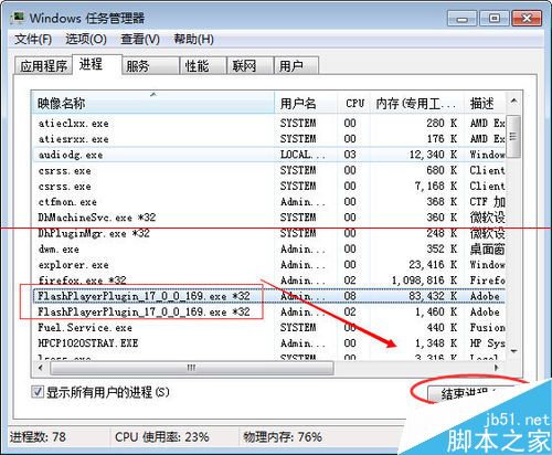 2、任務管理器出現沒響應的時候,也可以這樣 結束 flash 的進程來解決