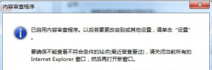 四、設置完成后,會彈出一個內容審查程序,提示“要確保不能查看不符合條件的站點(最近曾查看過),請關閉當前所有的internet explorer 窗口,然后在打開新窗口)。