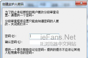 三、最后會彈出一個創建監護人密碼的對話框,然后在上面設置審查程序的密碼及密碼提示信息資料。如圖所示: