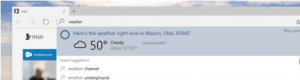此外Cortana還提供實時查詢,例如當你想要知道外面的天氣,你只需要在地址欄上輸入“Weather”關鍵詞,在無需跳轉到搜索結果頁面就能獲得當前用戶所在位置的天氣信息。