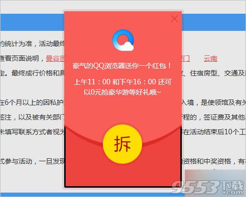 用QQ瀏覽器打開活動地址,獲得1次拆紅包的機會,設QQ瀏覽器為默認瀏覽器再獲得1次抽獎機會
