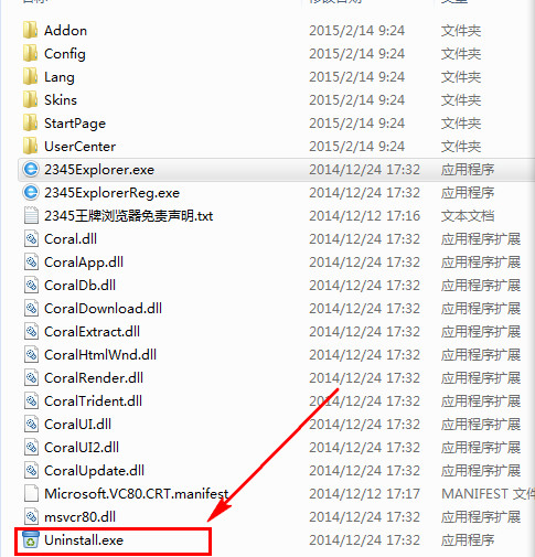 方法三:我們右擊2345王牌瀏覽器===打開文件夾位置===我們在安裝位置點擊“uninstall”
