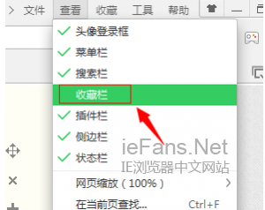 在查看的下拉菜單中找到“收藏欄”點擊一下,如圖: