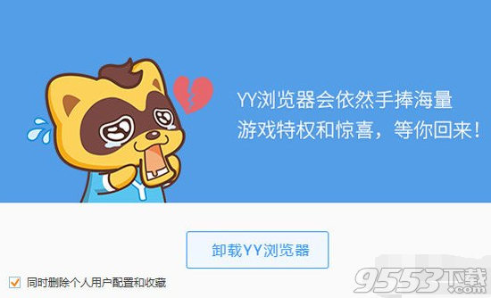 選擇“同時刪除個人用戶配置和收藏”點擊“卸載YY瀏覽器”這樣我們就卸載它啦。