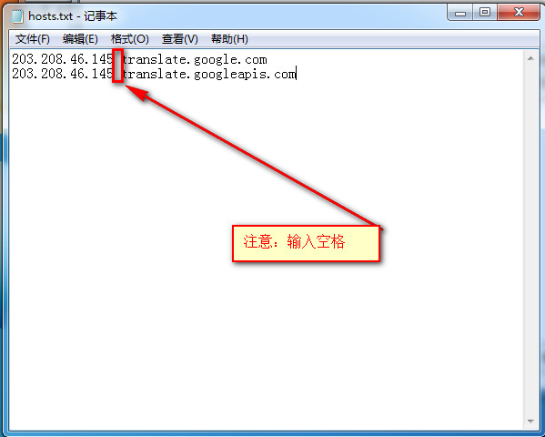 (2)在加入如下兩行(IP地址與網址之間必須有一空格):點擊“文件”→“保存”