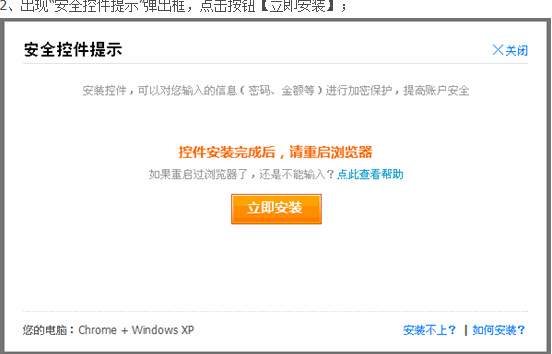 打開支付寶首頁,點(diǎn)擊【請(qǐng)點(diǎn)此安裝控件】 。