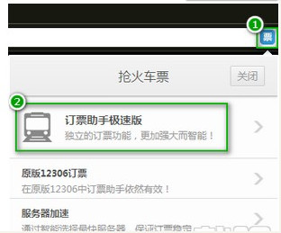 2、點擊地址欄右側的“票”圖標,建議首選“訂票助手極速版”。因12306改版導致極速版不能正常使用時請選擇“原版12306訂票”。