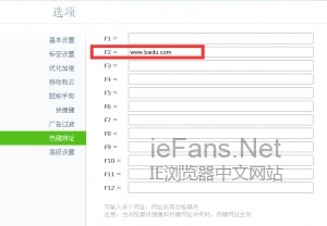2、在“選項”設置頁面下,選擇“熱鍵網址”一項,選擇在我們想要設置的熱鍵下輸入網址;