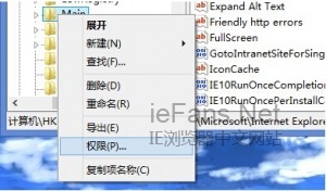 在打開的注冊表里面,選擇:“HKEY_CURRENT_USERSoftwareMicrosoftInternet Explorer”,在找到“Main”主鍵并右擊他,選擇“權(quán)限”,如圖