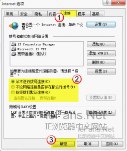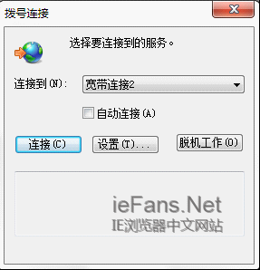 如果不想每次都彈出這個提示窗口,可以這樣取消:點擊上圖“設置”按鈕,然后切換到“連接”選項卡,設置為“從不進行撥號連接”,如圖: