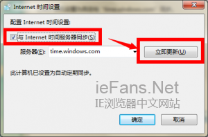 然后勾選“與Internet時間服務器同步”,然后點擊立即更新按鈕,最后確定。