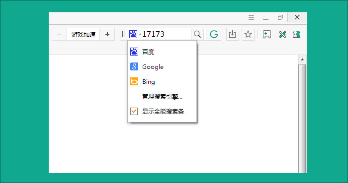 勾選顯示全能搜索條,還可以在搜索界面右邊切換不同搜索引擎。