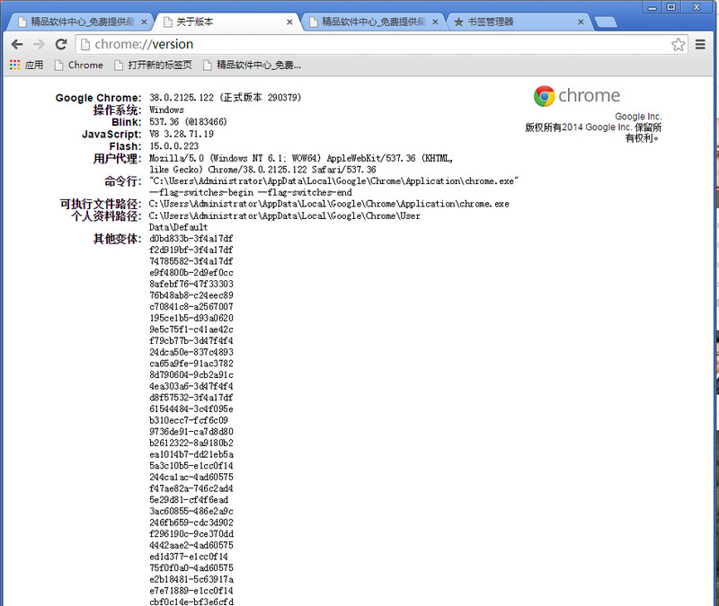 第二步:在Chrome瀏覽器的地址欄輸入Chrome:Version查看Chrome瀏覽器保存文件的位置。