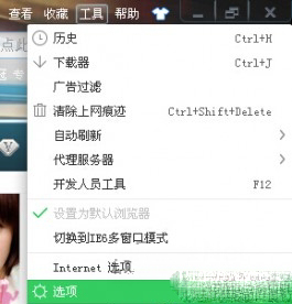 打開360瀏覽器,點擊頁面中的“工具”,在彈出的下拉框點擊“選項”;