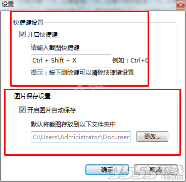 2、彈出截圖設置框,設置快捷鍵、圖片保存設置、截圖存放路徑