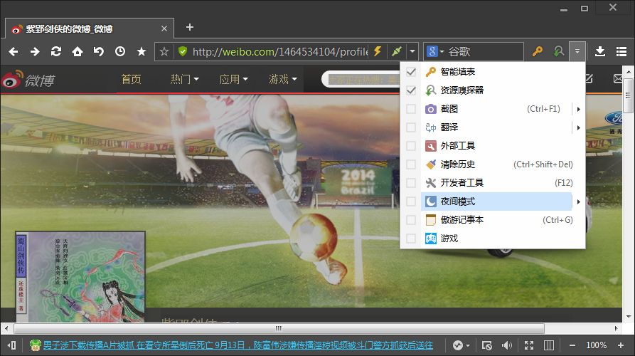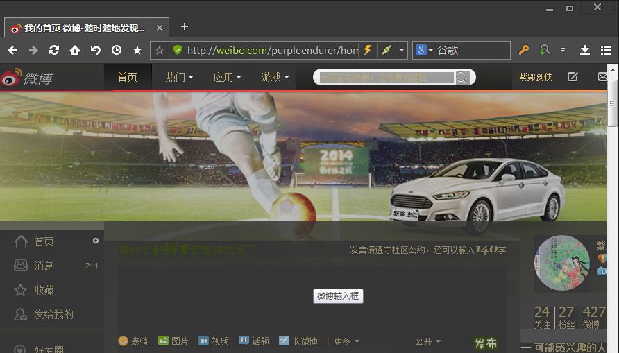 Maxthon3.5.2.2000cn夜間模式下的微博輸入框顯示效果較Maxthon3.5.2.1000cn有所改善: