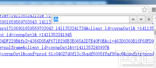 2:同時按下鍵盤的ctrl+f鍵,打開查找對話窗口右上角如圖,輸入視頻文件后綴名,一般為.flv .swf .avi .wmv .rmvb幾種,如圖以.flv為例