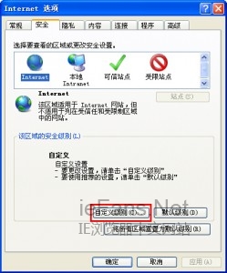 2、進入到“Internet 選項”之后,切換到“安全”選項卡,點擊該選項卡下找到自定義級別。