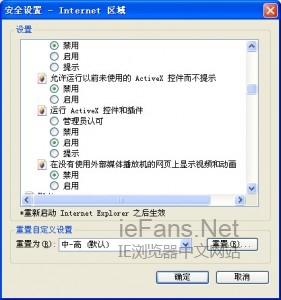 出現這個的原因大部分是用戶在把游覽器的安全級別設置為高,這樣不管是否運行activex軟件,瀏覽器都會自動改其位禁用。