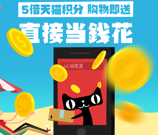使用UC瀏覽器在天貓里下單一次便送5倍天貓積分,可以直接當前花,實在是夠劃算的!