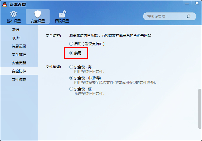 2. 在安全設置-安全推薦中取消勾選,如下圖所示: