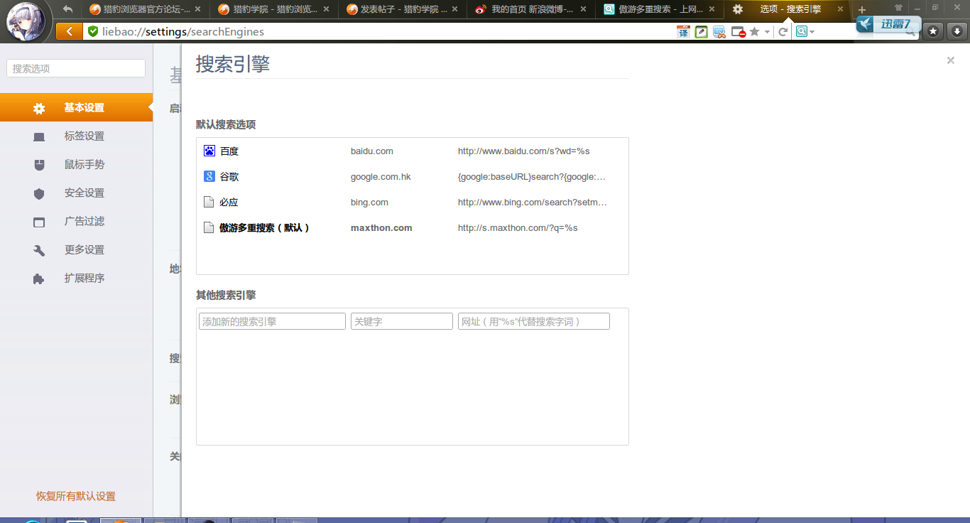 可惜獵豹沒有提供多重搜索引擎,擴展也不給力,怎么辦呢?