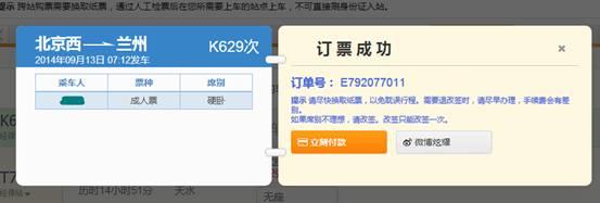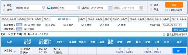 查詢北京到蘭州,9月1日的同一趟K629奇跡般的顯示有票