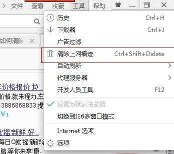 第二步:在工具的下拉上找到“清除上網(wǎng)痕跡”