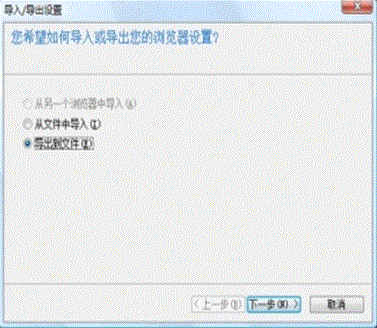 之后我們看到了很多導入導出選項,如:收藏夾、源(RSS)、Cookie咱們以收藏夾為例進行操作,選擇“收藏夾”,并點擊“下一步”,如圖將收藏夾進行導出;