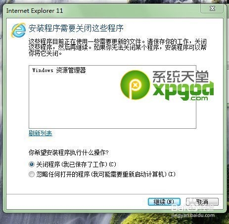 3、IE安裝過程中,也要結束下資源管理器,記得提前保存個人文檔