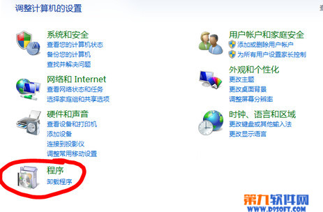 2、打開“控制面板”后,找到“程序”,點擊“卸載程序”,如下圖所示: