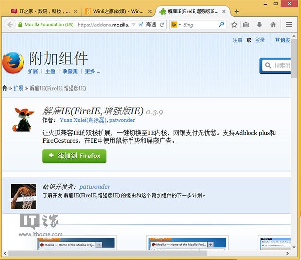 這是比較個性DIY的方案,兼具兩者各自的優(yōu)缺點,雖然火狐版Flash容易導(dǎo)致崩潰,但Win8、Win8.1Win內(nèi)置Flash Player插件非常穩(wěn)定,很少出現(xiàn)問題。因此,我們可以給火狐用上IE內(nèi)核,隨時切換訪問大量Flash網(wǎng)頁,輕松組成雙核,例如大家熟悉的”解雇IE”擴展,兼容最新版火狐瀏覽器。