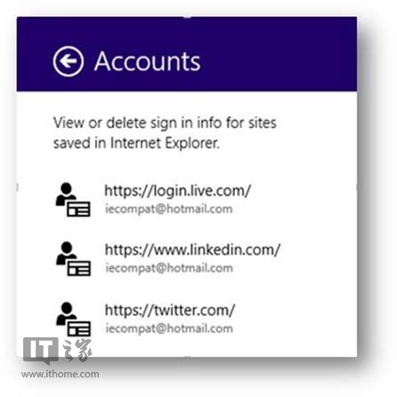 只需一款IE11瀏覽器,它可以識別網絡上90%的登錄表單,支持記住密碼。這也是IE11最出色的特性之一。