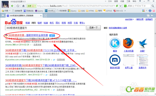 有時上面的升級方法不能夠升級到最新版本的瀏覽器,就需要用到另一種方法了,百度一下【360極速瀏覽器】