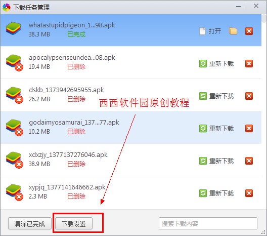當然你也可以在下載管理框那里打開下載設置