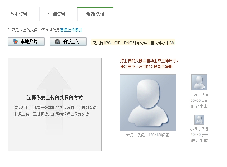 3.上傳頭像,自定義設(shè)置即可,和qq頭像設(shè)置差不多