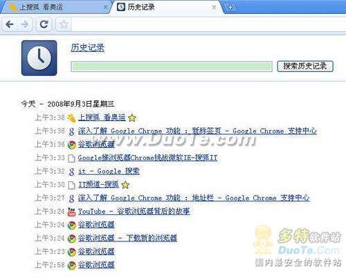 在地址欄中輸入網址,按回車鍵,或點擊箭頭圖標就可以打開網頁。在鍵入的同時,Chrome瀏覽器也會自動搜索你的瀏覽歷史記錄,并在下拉菜單底部顯示相匹配結果的總數。【xbeta補:這些功能已經成為了瀏覽器的基本功能。當然,對IE來說有點不太一樣。】
