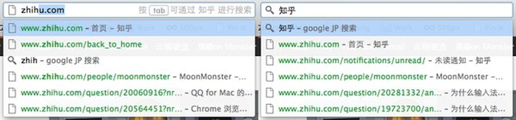 3.輸入框,將同樣具有輸入屬性的地址欄與搜索框進行融合,導致這個輸入框成為一個很復雜的系統,僅在輸入部分這個框就能夠輸入地址(廢話)、搜索本地歷史、搜索本地收藏、搜索Chrome插件、引用其它搜索引擎......Chrome將這些有機的融合在一起,用戶需要做的只是輸入,結果已經列好了。Chrome試圖簡化用戶在到達瀏覽頁面之前的所有操作,舉個小例子吧,用戶輸入http://zhihu.com進入知乎網站,下次用戶再試圖進入輸入時,從用戶輸入第一字母 Z 時,Chrome已自動幫用戶進行了補全(目前僅支持網址補全,而且是用戶瀏覽過的網站,這個設定很好,細節不表述自己思考吧),接下來就看用戶采取何種動作,回車鍵(打開網頁)或Tab鍵。