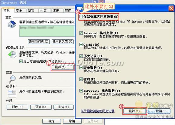在常規頁面點擊刪除,會彈出一個窗口,將“保留收藏夾網站數據”方框中勾去掉,再點擊刪除,然后點擊確認即可