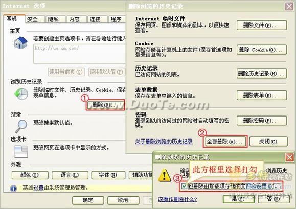 在常規頁面點擊刪除,會自動彈出一個窗口點擊上面的全部刪除全部刪除,的上面將“也刪除由加載項存儲的文件和設置”方框打上勾,再點擊是,最后點擊下方確認按鈕
