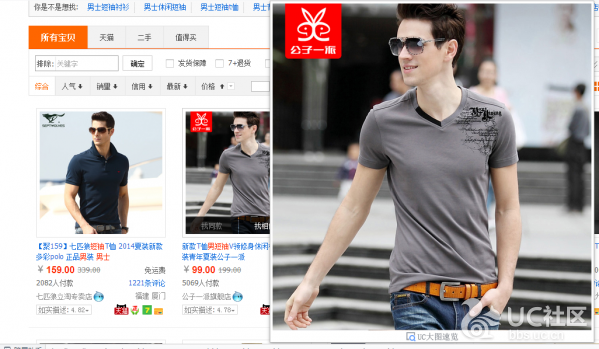 作為一名屌絲,除了陪基友玩游戲,當然也會偶爾逛逛淘寶,而uc這個大圖瀏覽功能,確實很方便,有木有!只有將鼠標光標移到相應的商品圖上面就可以看到大圖,可是當我打開京東的時候,發現這個功能不能用了,原來這個功能是專屬淘寶的,原因可能主要是阿里巴巴和uc是好基友的關系吧,但是從用戶角度,還是希望這個功能可以應用與其他網站的。