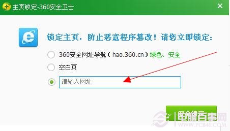 2,進入IE主頁鎖定界面,選擇下面的一個自定義主頁,我們輸入自己喜歡的主頁。然后點擊立即鎖定。