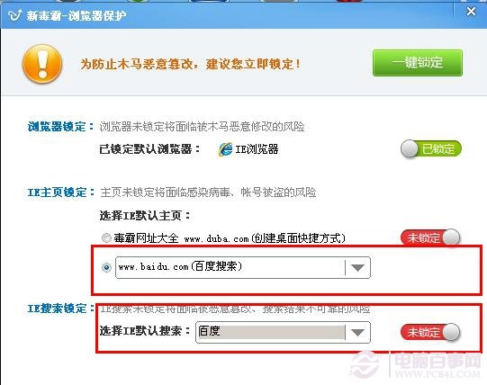 2,選擇如圖所示的IE主頁鎖定,點擊鎖定,輸入我們自己喜歡的網址即可。